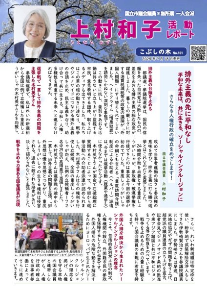 〈上村和子の活動レポート「こぶしの木」100号(2025年4月25日発行〉